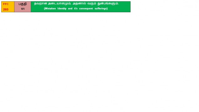 அறிவு தான் யார் என்று அறியாதபோது அது தவறான அடையாளமாகத்தானே இருக்கும். தவறான அடையாளத்திற்கான ஏற்ற நினைப்பையும், செயல்கைளையும் கொண்ட வாழ்க்கையில் துன்பம் தானே எஞ்சி நிற்கும்? எனவே வரும் அறிவிற்கு விருந்தில் (06-07-2016-புதன்) தவறான அடையாளத்தால் வரும் துன்பங்களைப் பற்றி சிந்திக்க இருக்கிறோம்.