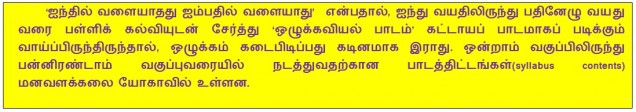 ‘தொட்டில் பழக்கம் சுடுகாடு மட்டும்’ என்று ஆன்றோர்கள், எதார்த்தத்தை கூறியுள்ளார்கள். இதன் பொருள் குழந்தைப்பருவத்தில்/இளமையில் ஏற்படுத்திக் கொண்ட பழக்கமே இறக்கும் வரை தொடரும் என்பதாகும். பழைய பழக்கத்தை மாற்றுவது கடினம் என்பதால் இளமையிலே நற்பழக்கங்களைக் பழகிக் கொள்ள வேண்டும் என அறிவுறுத்தப்படுகின்றது அறிஞர்களால். அப்படியில்லாத காரணத்தால், ஒழுக்க வாழ்க்கை வாழ்வதற்கு அறிஞர் ரூஸோ கூறியுள்ளது போல் மனதுடன் போராட வேண்டியிருக்கின்றது.