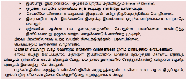 3) எவ்வளவு சீக்கிரம், ஒழுக்க வாழ்க்கை வாழ்வது, பழக்கத்திற்கு வந்து வழக்கமாகி விடுகிறதோ அவ்வளவு சீக்கிரத்தில் மனதுடன் போராட்டம் நடப்பது நின்று விடும். விளைவு — ஒழுக்க வாழ்வு அமைதியைத் தரும் என்றும் அறிந்தோம்.