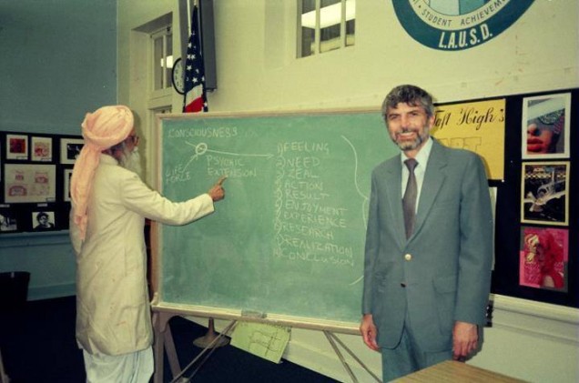 மேலே உள்ள புகைப்படத்தில் மகரிஷி அவர்கள் அமெரிக்கா சென்றிருந்தபோது, அங்குள்ள சீடர்களுக்கு வகுப்பு எடுப்பதை காண்பதற்கு உள்ளம் மகிழ்ச்சி அடைகின்றது. மனதை பற்றிய பாடம் நடத்திக் கொண்டிருக்கின்றார் மகரிஷி அவர்கள். மனதின் பத்துப்படிகளை கரும்பலகையில் எழுதியிருக்கிறார்கள். 1980 களில் மகரிஷி அவர்களே பாடம் நடத்துவார்களாம். அப்போதெல்லாம் ஐந்து நாள் சிறப்புப் பயிற்சியாக நடத்துவாராம். பொதுவாக ஆன்மீக நிலையங்களில் பயிற்சிகள் நடத்தப்பட்டு வருகின்றன. ஆனால் கரும்பலகை, மற்றும் chart ஆகியவற்றை வைத்து கல்லூரியிலே பாடம் நடத்துவதுபோல் மனவளக்கலையில் கருத்தியல் பாடங்கள் விரிவாக நடத்தப்படுகின்றது. செய்முறை பயிற்சிகளுக்குக் கூட கருத்தியல் விளங்கங்கள் உள்ளன. ஏன், எதற்காக செய்கிறோம் என்கின்ற விளக்கத்தோடுதான் ஒவ்வொரு பயிற்சியாளரும் செய்முறைப் பயிற்சிகளை மேற்கொள்கின்றனர். மகரிஷி அவர்கள் மூன்றாம் வகுப்பு வரைதான் பள்ளிப்படிப்பு படித்திருக்கிறார். பள்ளிப்படிப்பை நிறுத்திவிட்டு, பிறகு திண்ணைப்பள்ளிக்கூடத்தில் சேர்ந்து படித்ததாகக் கூறுகிறார் மகரிஷி அவர்கள். அந்த திண்ணைப்பள்ளிப்படிப்பு, பள்ளிப்படிப்பின் எட்டாம் வகுப்பு வரை சமம் என்று கூறுகிறார். ஆனால் அவரது மறைபொருள் கண்டுபிடிப்புகள், வாழ்வியல் உண்மைகள், சமுதாய அக்கறை சார்ந்த நலத்திட்டங்கள், உரைநடைகள், கவிகள் ஆகியவற்றை பாடங்களாக்கி பள்ளியிலிருந்து கல்லூரிகள் வரை முதுகலைப்பட்டப்படிப்புகளாக நடத்தப்படுகின்றன. மேலும் அவரது சிந்தனைகள் முனைவர் பட்டப்படிப்புக்கும் எடுத்துக் கொள்ளப்படுகின்றது.