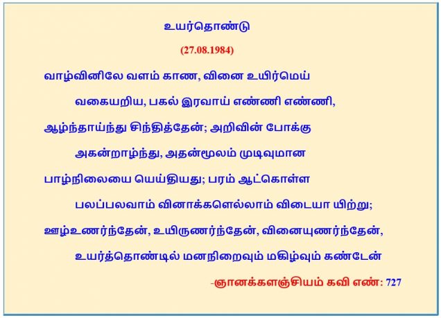 - ஆழ்ந்து ஆழ்ந்து சிந்தித்தேன் என்பதற்கு என்ன பொருள்? உத்தம நண்பர்காள் உங்கட்கும் உரியது என்கின்ற உறுதியை நினைவில் கொண்டு மற்ற பணிகளுக்கும்-கடமைகளுக்கும் குந்தகம் ஏற்படாமல் சிந்தித்து ஆன்மபலன் பெறலாமே?