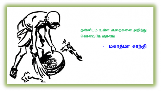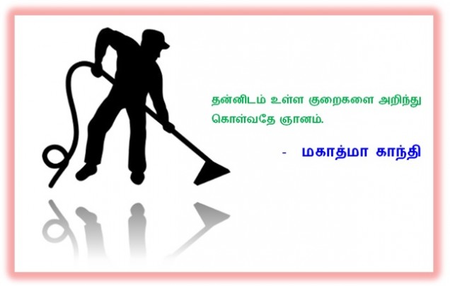 தன்னிடம் உள்ள குறைகளை அறிந்து கொள்வதே ஞானம் என்கிறார் நம் தேசத் தந்தை மகாத்மா காந்தி அவர்கள். குறைகளை அறிந்து கொள்வதே ஞானமா? தன் குறைகளைத் தானே அறிபவன் அத்துடன் சும்மா இருந்து விடுவதில்லை. ஏனெனில், வள்ளுவர் கூறுவதுபோல் சான்றோர்களின் அணிகலான நாணம் அவனிடமும் உள்ளதால் தன்னைத் திருத்திக் கொள்ள முயல்வான், தன்குறைகளை அறிந்து கொண்டு தன்னை திருத்திக் கொள்ளும் போதுதான் அவன் தன் குறைகளை அறிந்தவன் ஆகிறான். அவனே தான் பின்னர் சான்றோனாகிறான். ஞானியாகிறான்.