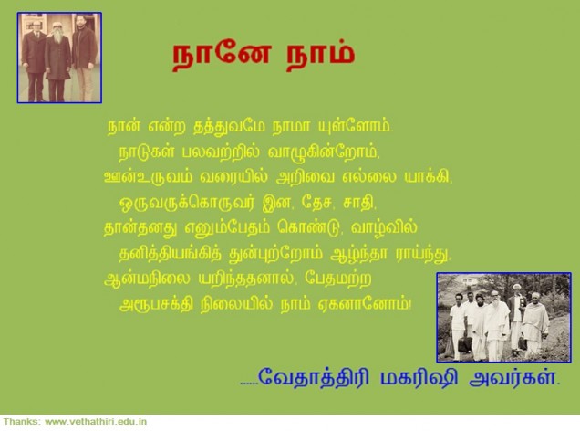 மகரிஷி அவர்கள் “நானே நாம்” என்று கூறும் பாடலோடு இன்றைய சிந்தனையை நிறைவு செய்வோம். அவ்வாறு நினைவு கூர்வதுவே அவ்வையார் கூறும் நான்கு இனியவைகளில் கடைசியும் அளவில் அதிகமானதுமான “அறிவினரை கனவிலும் நனவிலும் காண்பது இனிது” என்பதாகும்.