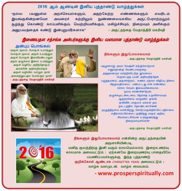 ஆகவே இன்றைய நன்னாளில் நாம் செய்ய வேண்டியது ஒவ்வொரு கவியினையும் தமிழ் மற்றும் ஆங்கில விளக்கவுரை இரண்டையுமே சேர்த்து வாசித்து மகரிஷி அவர்களின் விருப்பப்படி அவருடைய உயர்நோக்கத்துடன் இணைந்து இவ்வையகத்தை வாழ்த்துவோம்.