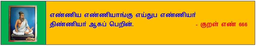 திருவள்ளுவரைப் போன்றே மகான் மகா கவி பாரதியார் எண்ணியது முடிவதற்கும், அதே நேரத்தில் நல்லவை எண்ணவேண்டும் என்பதில் உறுதியோடு இருக்க திண்ணிய நெஞ்சம் வேண்டும் என இறைவியை இறைஞ்சுகிறார். அப்பாடலை நினைவில் அடுத்த விருந்தில் (17-07-2016 ஞாயிறு) அறிந்து கொள்வோம்.