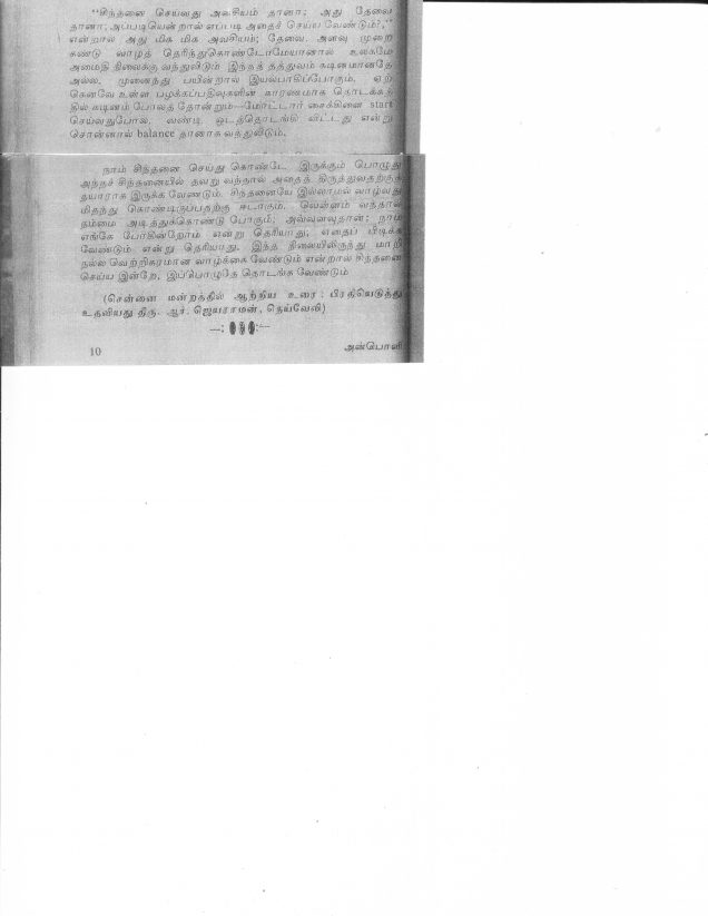 சிந்தனை செய்வது அவசியம் தானா; அது தேவைதானா; அப்படியென்றால் எப்படி அதைச் செய்ய வேண்டும்?” என்றால் அது மிக மிக அவசியம்; தேவை. அளவு, முறை கண்டு வாழத் தெரிந்து கொண்டோமேயானால் உலகமே அமைதி நிலைக்கு வந்துவிடும். இந்த தத்துவம் கடினமானதே அல்ல. முனைந்து பயின்றால் இயல்பாகிப்போகும். ஏற்கனவே உள்ள பழக்கப்பதிவுகளின் காரணமாக தொடக்கத்தில் கடினம் போலத் தோன்றும்—– மோட்டார் சைக்கிளை start செய்வதுபோல, வண்டி ஓடத் தொடங்கிவிட்டது என்று சொன்னால் balance தானாக வந்துவிடும்.